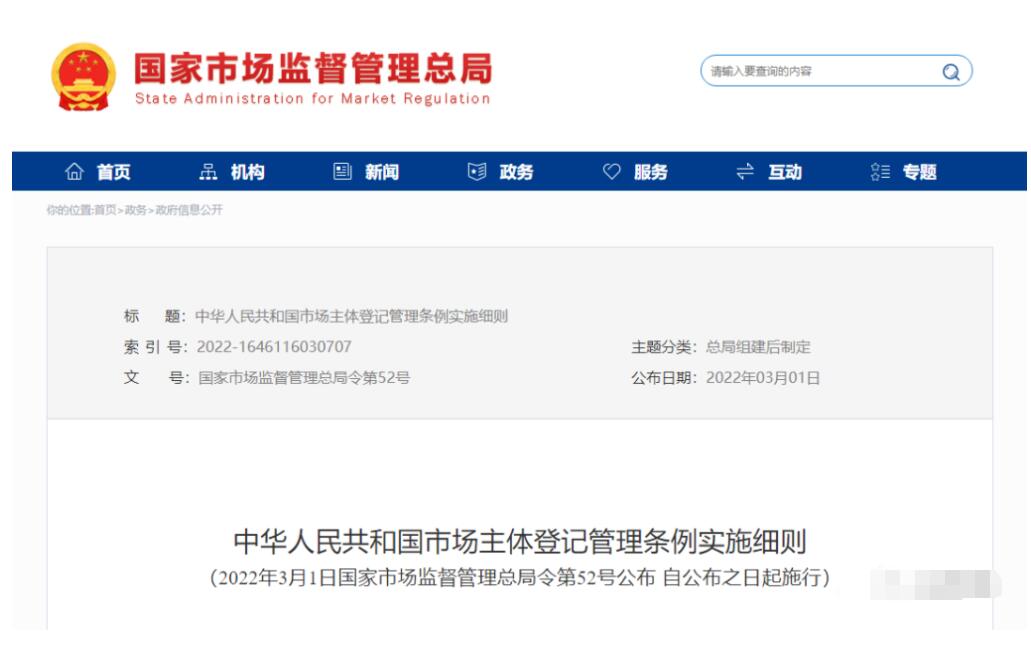 為貫徹落實(shí)《中華人民共和國市場主體登記管理?xiàng)l例》(以下簡稱《條例》),充分發(fā)揮市場主體登記管理職能,激發(fā)市場創(chuàng)業(yè)創(chuàng)新活力,市場監(jiān)管總局制定了《中華人民共和國市場主體登記管理?xiàng)l例實(shí)施細(xì)則》(以下簡稱《實(shí)施細(xì)則》),與《條例》2022年3月1日同步施行。